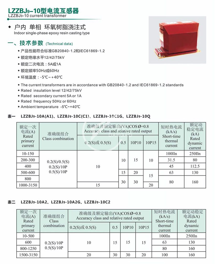 LZZBJ9-10型電流互感器